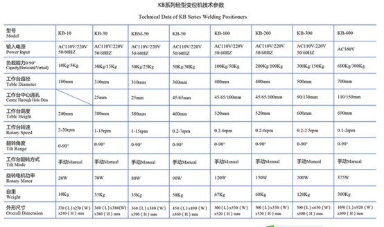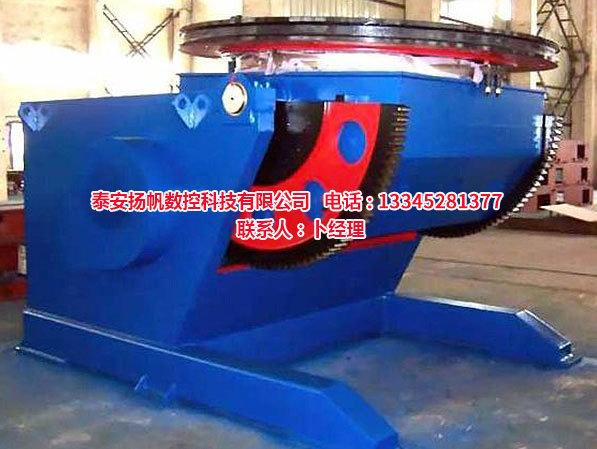 焊接變位機(jī)一般由工作臺回轉(zhuǎn)機(jī)構(gòu)和翻轉(zhuǎn)機(jī)構(gòu)組成,變位機(jī)通過工作臺的升降,翻轉(zhuǎn)和回轉(zhuǎn)使固定在工作臺上的工件達(dá)到所需的焊接,裝配角度,變位機(jī)工作臺回轉(zhuǎn)為變頻無級調(diào)速,可得到滿意的焊接速度