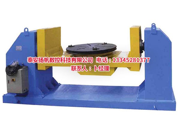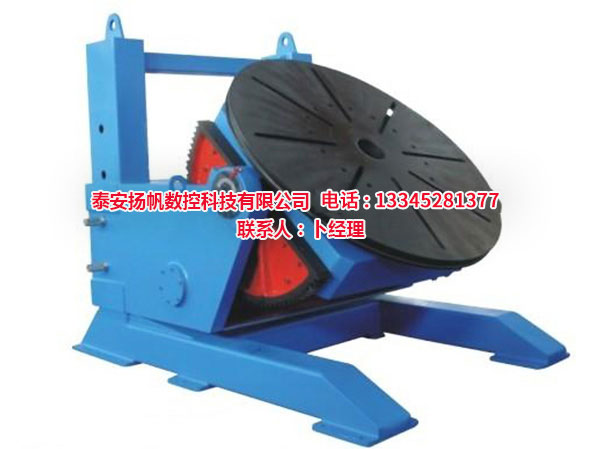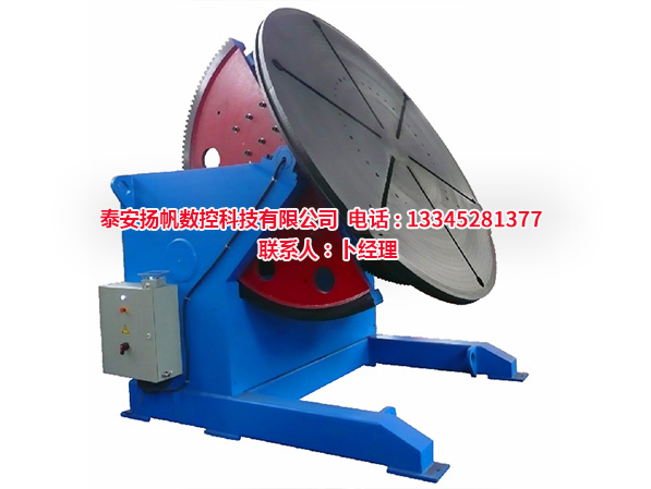 焊接變位機(jī)一般由工作臺回轉(zhuǎn)機(jī)構(gòu)和翻轉(zhuǎn)機(jī)構(gòu)組成,變位機(jī)通過工作臺的升降,翻轉(zhuǎn)和回轉(zhuǎn)使固定在工作臺上的工件達(dá)到所需的焊接,裝配角度,變位機(jī)工作臺回轉(zhuǎn)為變頻無級調(diào)速,可得到滿意的焊接速度